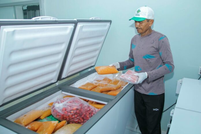 Ele mostra com orgulho os frezeres cheios de polpas de cupuaçu, maracujá, acerola, mico e goiaba. Cupuaçu com 1.500 kg e maracujá com 3 mil kg são as frutas de maior produção. Ao todo, Francisco chega a produzir mais de 8 mil kg em polpas e todos com destino definido.