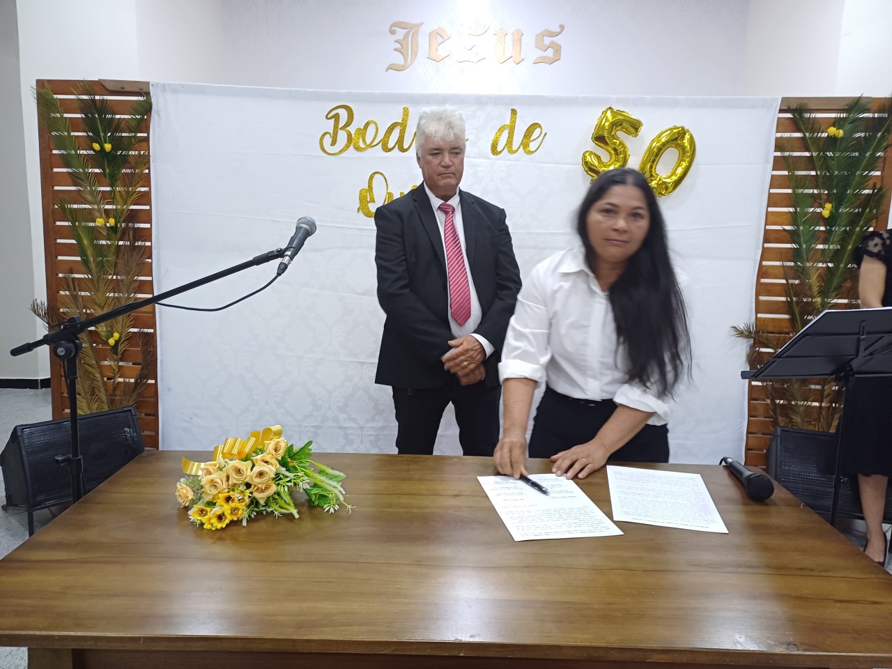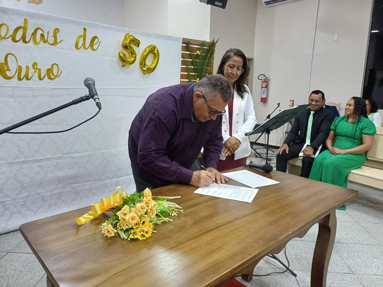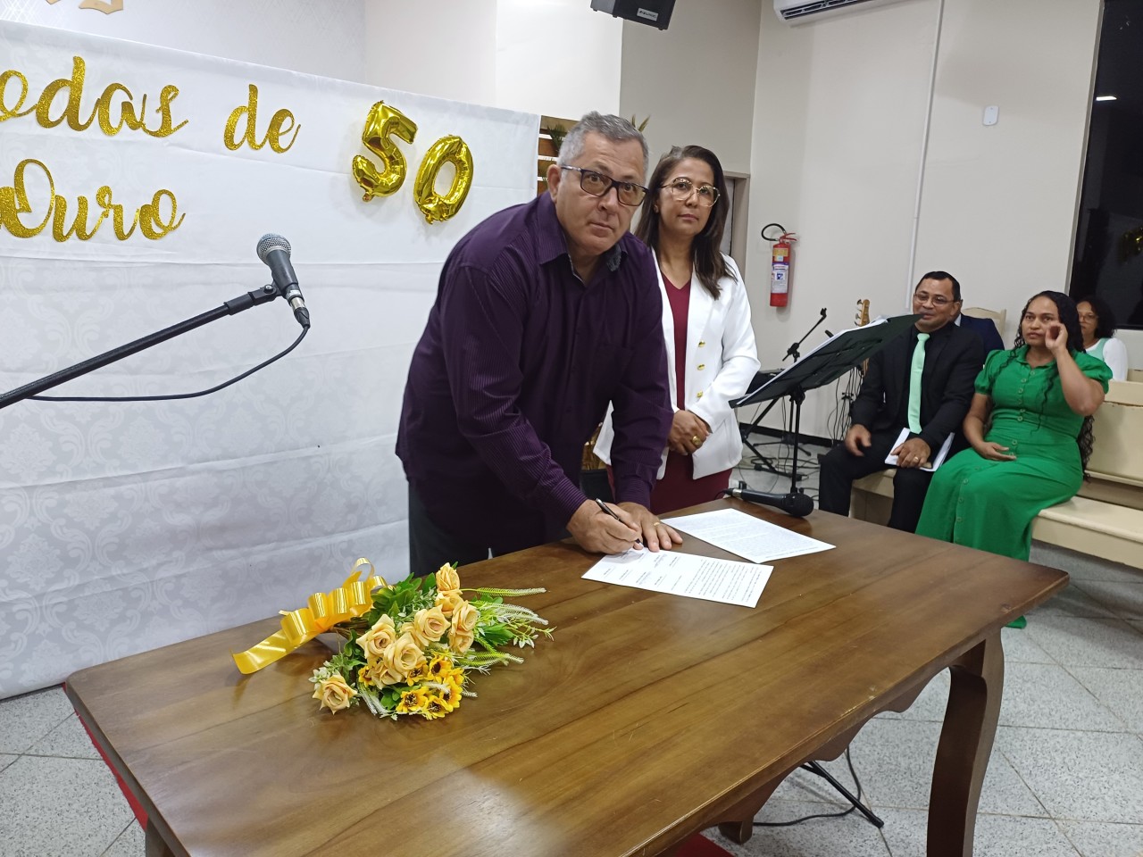 “Chegar a 50 anos de casamento é um marco que não alcançamos sozinhos. Foi Deus quem nos sustentou, e é Ele quem continuará nos guiando”, declarou Domingos durante a cerimônia.