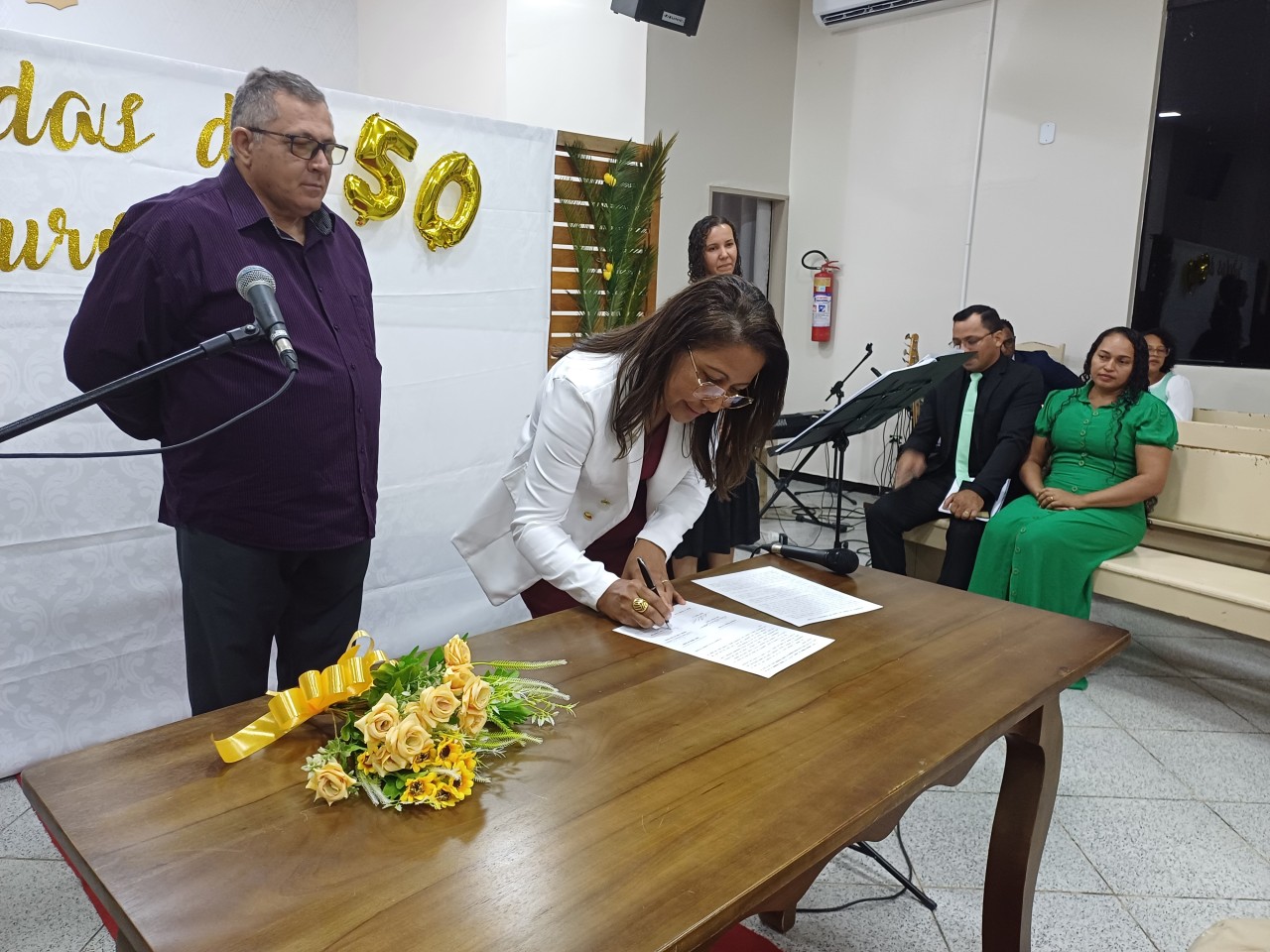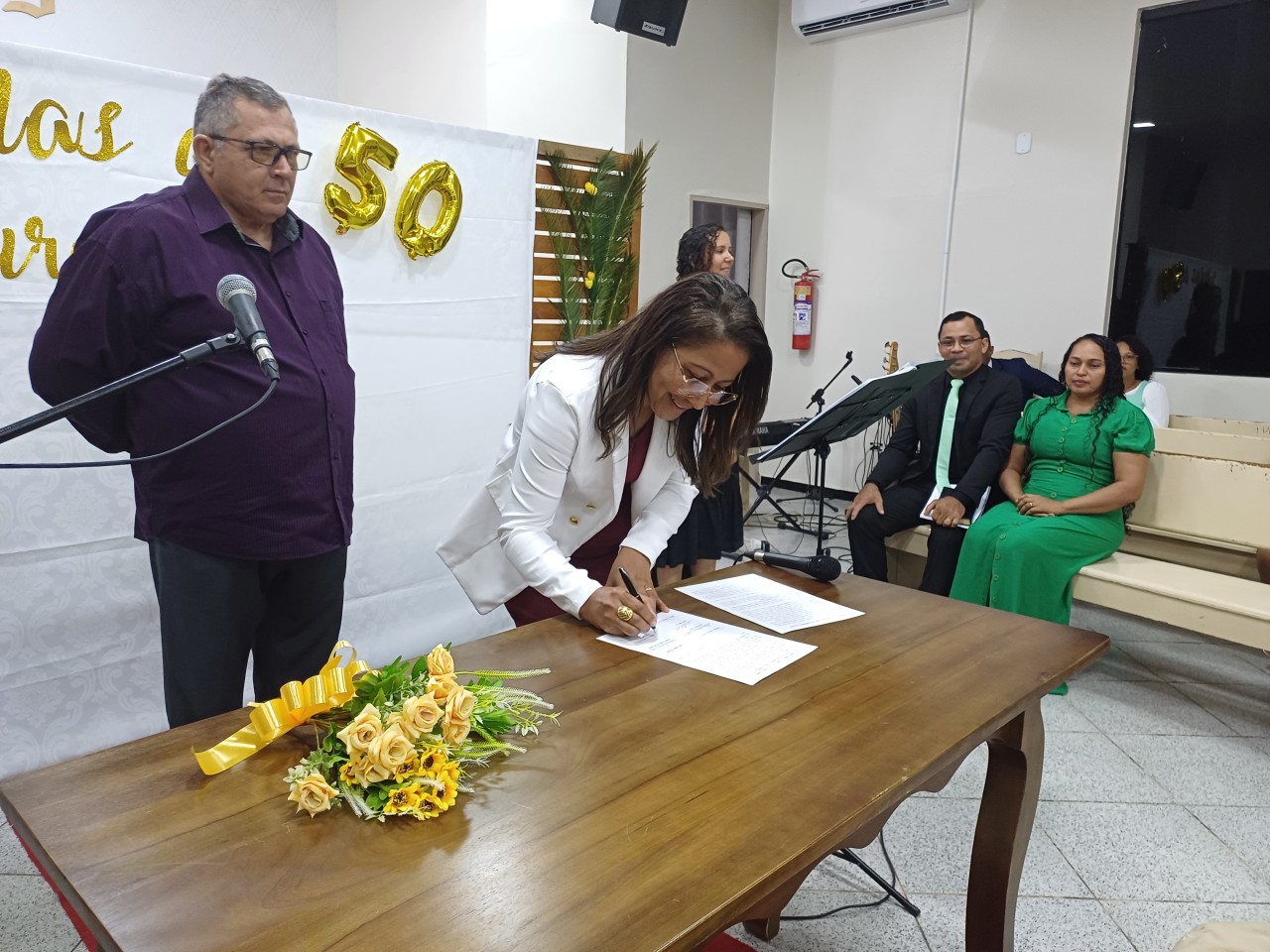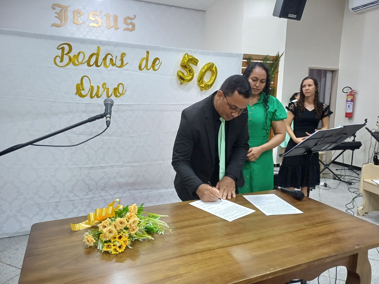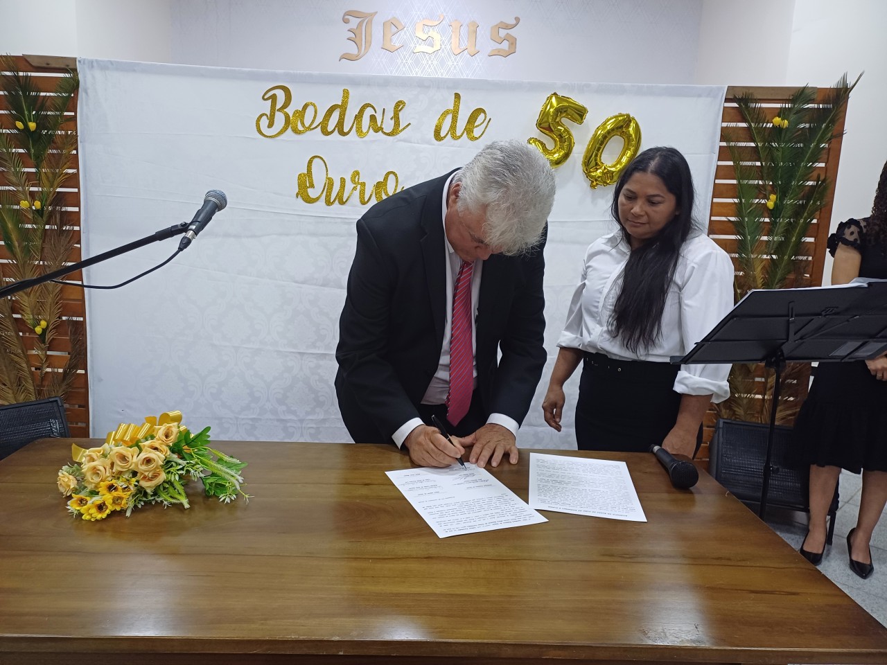 “Chegar a 50 anos de casamento é um marco que não alcançamos sozinhos. Foi Deus quem nos sustentou, e é Ele quem continuará nos guiando”, declarou Domingos durante a cerimônia.