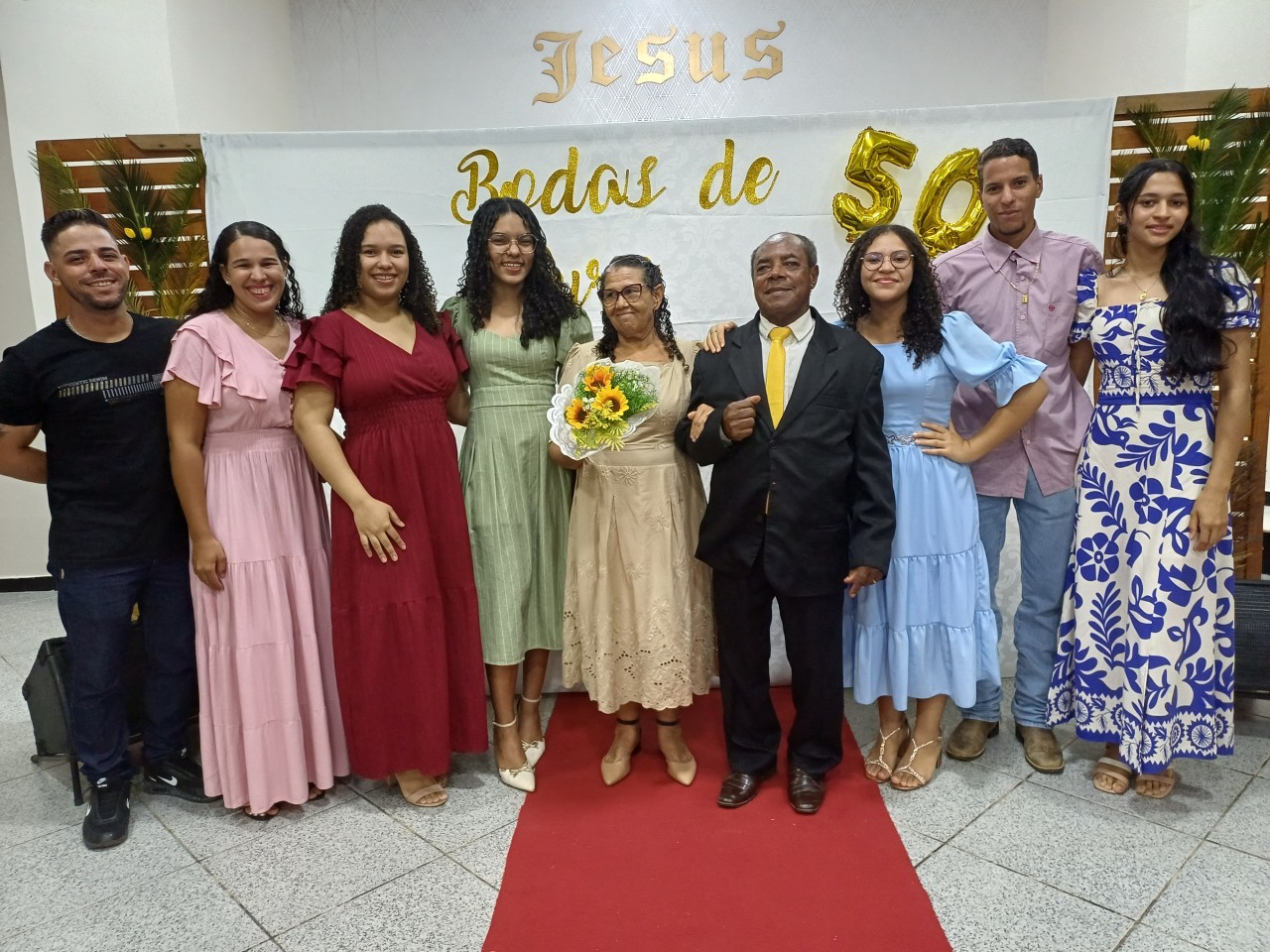 Parabéns ao casal pelas Bodas de Ouro! Que esta união continue sendo uma inspiração e um testemunho vivo de amor e fé para as futuras gerações.