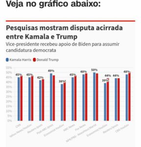 Pesquisas mostram disputa acirrada entre Kamala e Trump