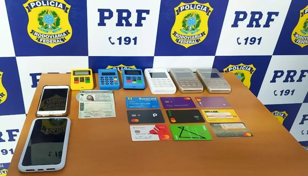 Com a infratora da lei também foram apreendidas máquinas de cartão, cartões de crédito e um crachá falso. Na semana passada, a detida foi presa no Acre em situação similar, transportando diversas “maquininhas”, em possível situação de estelionato.