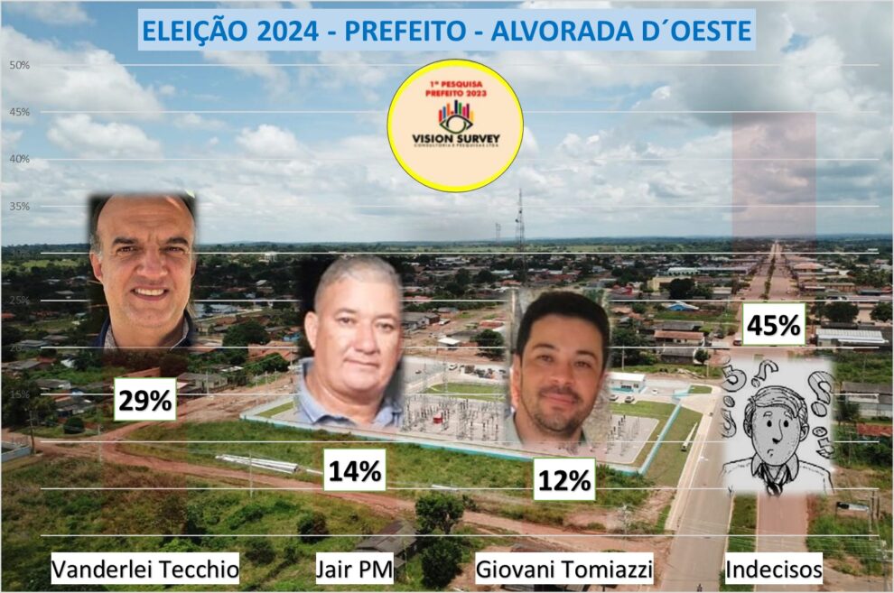 Na mais nova pesquisa de intenção de votos do Instituto Vision Survey, na cidade de Alvorada D´Oeste, a corrida sucessória para prefeito tem três fortes pré-candidatos.