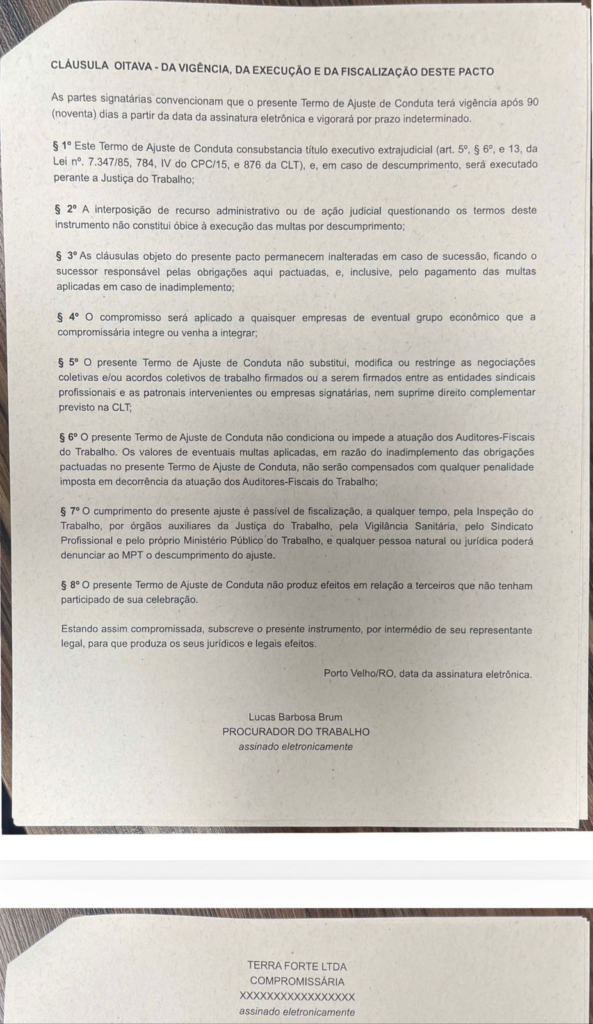 É bom lembrar que a ata de registro de preços da Terra Forte é legal. No papel está tudo lícito, mas na prática existia até trabalho análogo à escravidão.