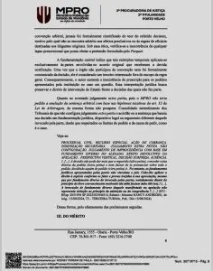 Na manifestação, a Procuradoria de Justiça afirmou que não houve decadência, pois o prazo para ajuizamento da ação principal deve ser contado a partir da efetivação da medida cautelar e não da simples intimação de sua concessão.