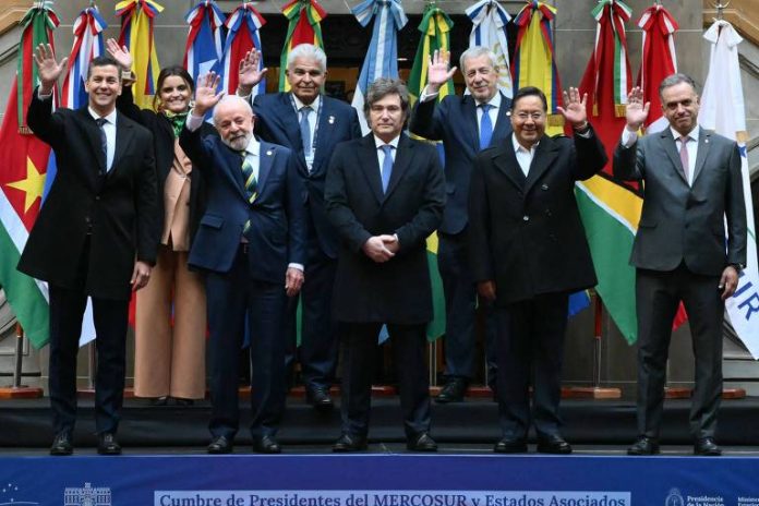 Presidentes dos dois países têm visões antagônicas sobre bloco econômico. Lula participa, em Buenos Aires, da reunião de cúpula. Ao fim do encontro, Lula recebe de Milei o comando do grupo pelos próximos seis meses.