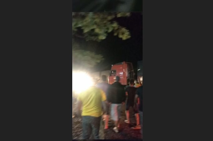 Vários vídeos estão sendo compartilhados nas redes sociais onde é possível verificar que um caminhoneiro a bordo de uma carreta de cor vermelha, passou com o veículo por cima de manifestantes e suas barracas.