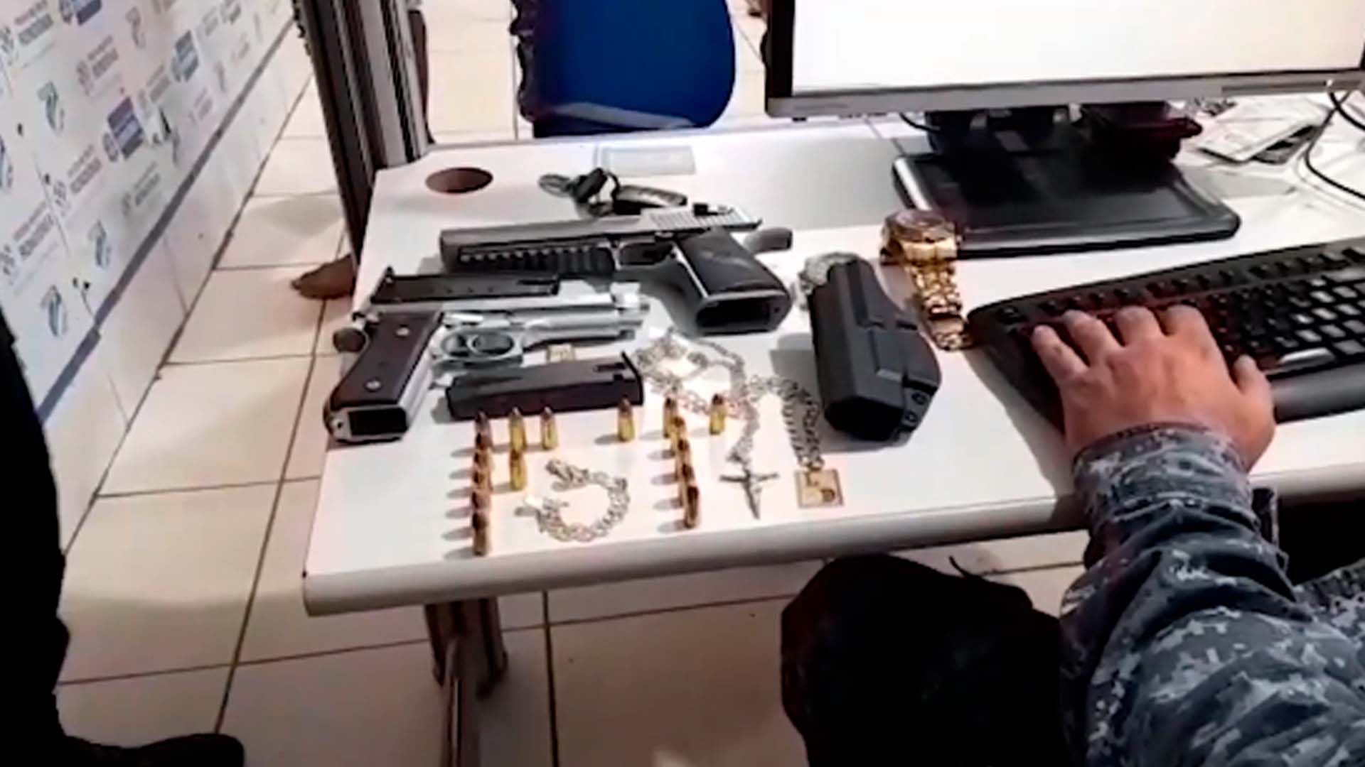 Três homens de 21, 26 e 27 anos foram presos na quinta-feira (19) armados com uma pistola calibre .50 de fabricação americana e uma 9mm Taurus.