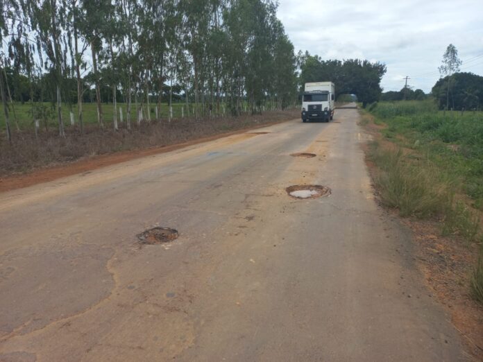Rodovia está com trechos praticamente intransitáveis, necessitando de recuperação urgente.