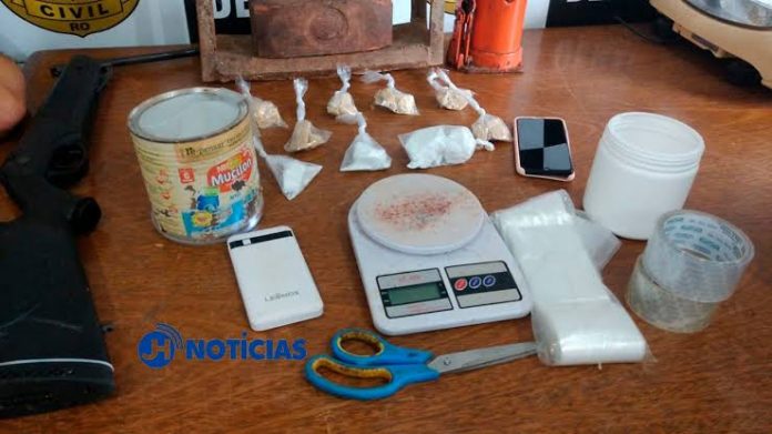 Na casa onde estava Bruno os policiais encontraram porções de cocaína em pó e também cocaína oxidada, que juntas pesam aproximadamente meio quilo. Foram apreendidas ainda uma espingarda, uma bicicleta com procedência duvidosa, balança de precisão, prensa e outros apetrechos. Bruno foi preso e levado para a sede do Denarc.