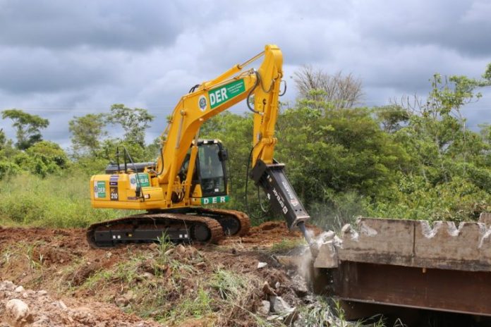 “Estamos com servidores e equipamentos trabalhando aqui na ponte sobre o rio Ubirajara, que fica, a 18 quilômetros de Jaru. A ponte que foi construída há mais de 20 anos precisava ser trocada, primeiro foi feito um desvio com tubos armcos e toda garantia de segurança para a população trafegar, agora a antiga ponte está sendo demolida. A RO-463 é importante na região, onde o tráfego de veículos é grande. O governador, coronel Marcos Rocha determina que fiquemos atentos aos pontos que possam causar transtornos aos rondonienses,” destacou Elias Rezende, diretor-geral do DER.