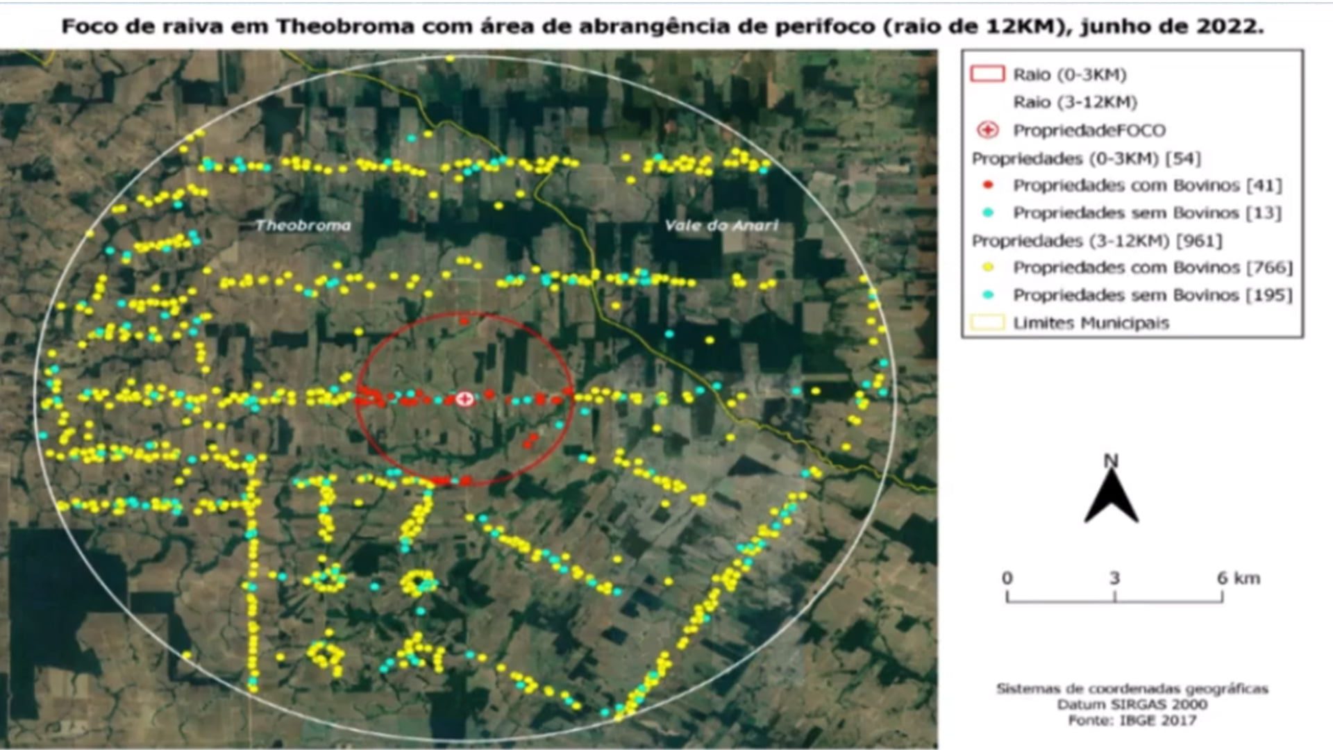 Um foco de raiva animal foi registrado em um sítio na região de Theobroma (RO) na divisa com Vale do Anari (RO). Por isso, segundo a Agência de Defesa Sanitária Agrosilvopastoril do Estado de Rondônia (Idaron), todas as propriedades rurais no raio de 12 quilômetros do foco serão inspecionadas. A informação foi confirmada nesta segunda-feira (13).