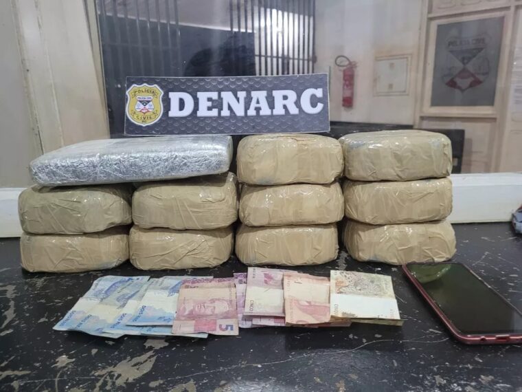 A atitude chamou a atenção dos agentes, que iniciaram uma vistoria ao veículo. Na mochila do passageiro foram encontrados 11 kg de uma substância aparentando ser cocaína.