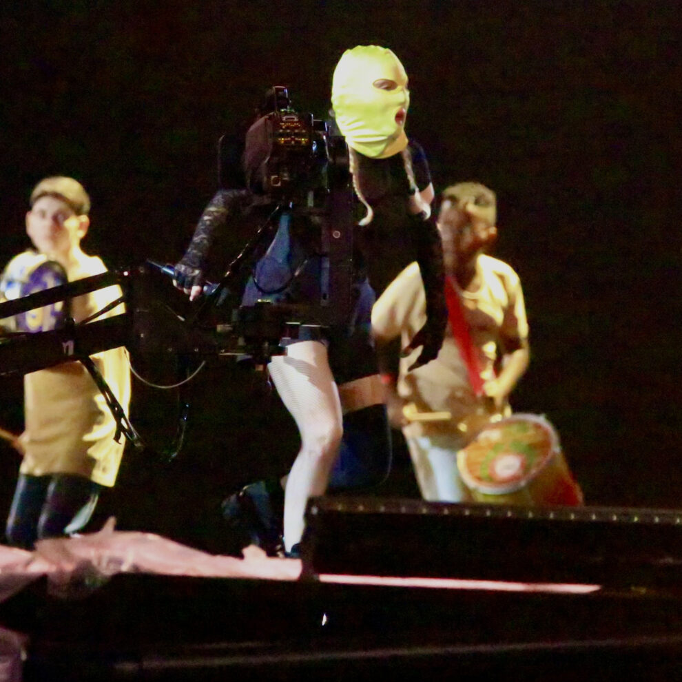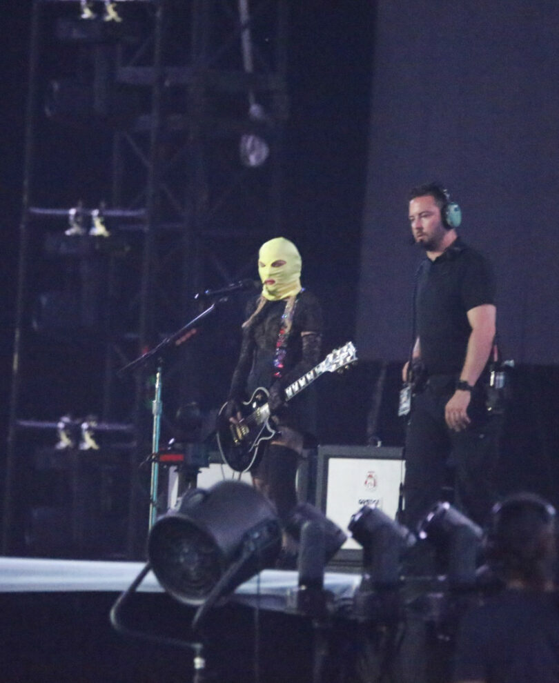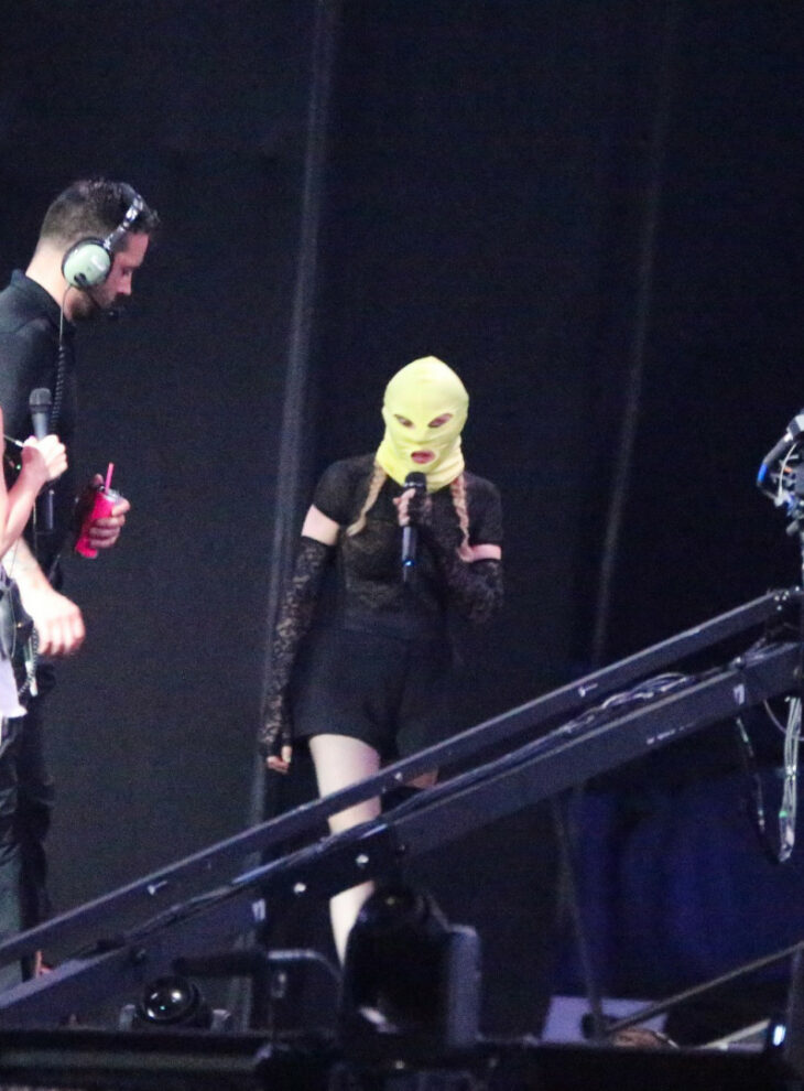 Por volta das 20h30, Madonna finalmente entrou no palco. Vestindo look todo preto com uma balaclava de látex amarela, a diva ensaiou as músicas “Nothing Really Matters”, “Burning Up” e tocou violão em “Express Yoursef”, levando os fãs à loucura.
