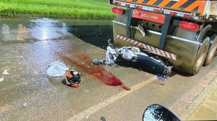 O acidente ocorreu na noite deste sábado, 6. O motociclista ainda não identificado colidiu violentamente na traseira de uma carreta estacionada na Av. Celso Mazutti, próximo à A groaves, no bairro Jardim América.