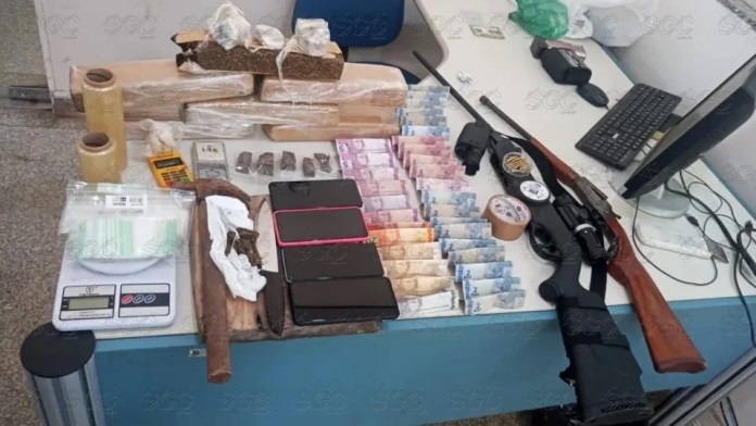 Além da droga, durante a busca na residência, os policiais encontraram uma espingarda de pressão, uma arma de fogo calibre 22, um binóculo de visão noturna, munições, uma balança de precisão e materiais para embalar a droga. Ao todo, foram apreendidos cerca de 5 kg de entorpecentes em pacotes análogos à maconha.