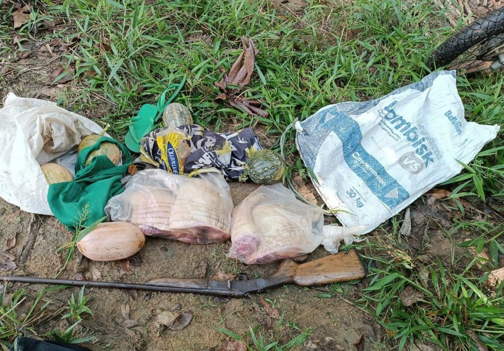 Em outro setor da Terra Indígena, a equipe interceptou três suspeitos em fuga, que abandonaram duas motocicletas danificadas e um capacete ao perceberem a aproximação dos oficiais. Além disso, uma espingarda oxidada e vestígios de caça ilegal foram encontrados nas proximidades. Apesar das buscas, os infratores não foram localizados, e todos os objetos foram apreendidos e encaminhados para investigação e responsabilização dos envolvidos.