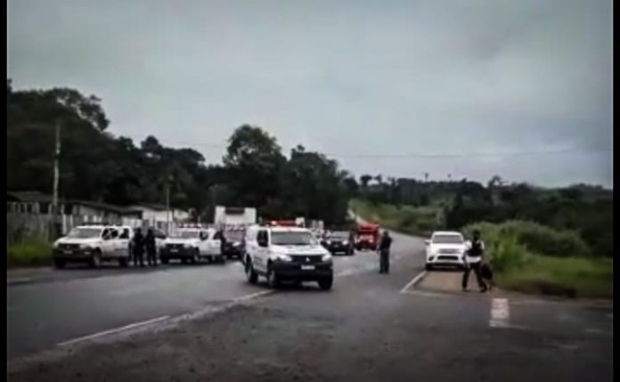 Todo a ação policial está sendo acompanhada por representantes de órgãos ambientais, judiciais, viaturas Patamo, helicóptero e drone entre outros equipamentos e forças policiais, para garantir a reintegração de posse.