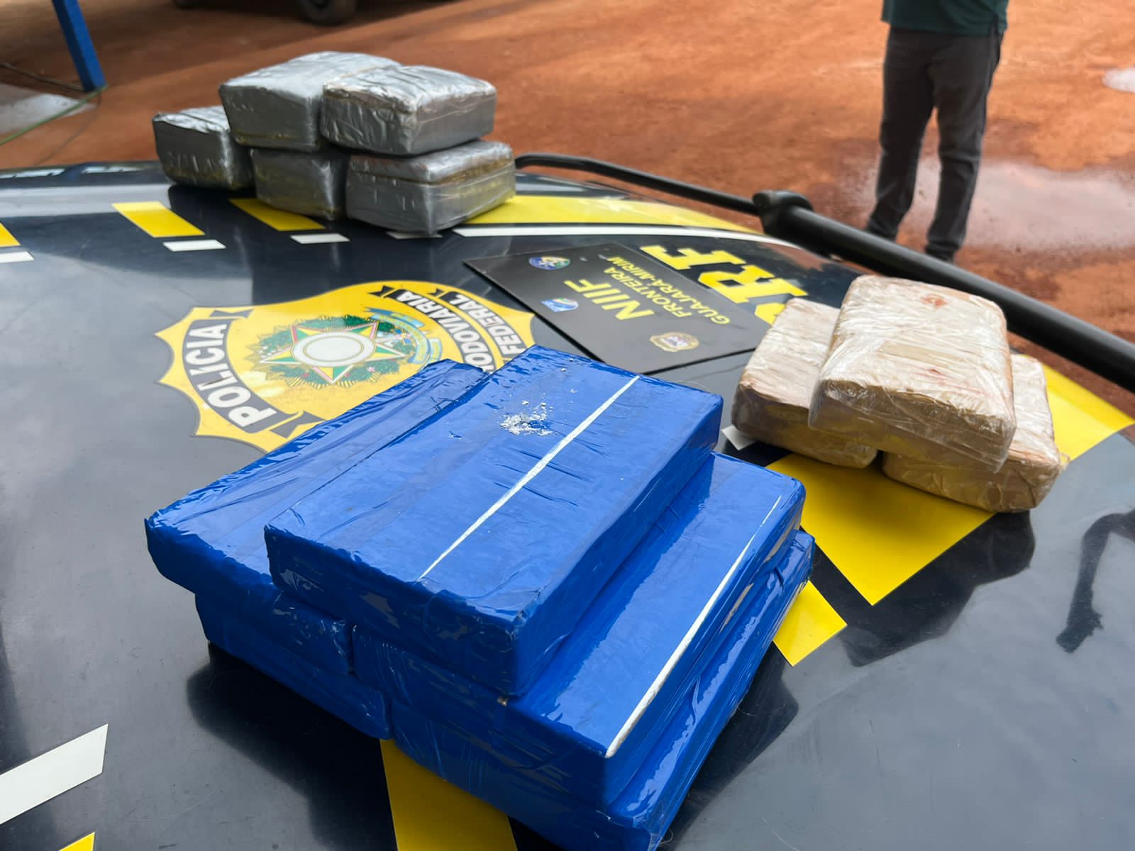 A Polícia Rodoviária Federal (PRF) em Rondônia, no fim da manhã dessa sexta-feira (27), realizando atividade de enfrentamento ao tráfico de drogas em região de fronteira e policiamento ostensivo com fiscalização de trânsito na BR 425, próximo ao km 108, no município de Guajará-Mirim interceptou um carregamento de Drogas (8 KG de CLORIDRATO DE COCAÍNA e 5 KG de MACONHA) sendo transportado por dois homens (um de 26 e outro de 32 anos) que viajavam em um veículo de aplicativo Hyundai HB20s.