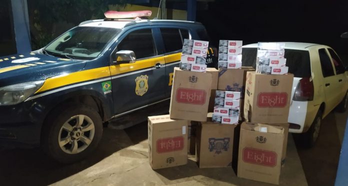 A Polícia Rodoviária Federal (PRF) em Porto Velho, no decorrer de fiscalização na BR 364, abordou um veículo de passeio (FIAT palio), conduzido por um homem, 30 anos, que vinha de Guajará-Mirim para a capital. Durante os procedimentos de fiscalização, a equipe policial flagrou no interior do automóvel o transporte de grande quantidade de maços de cigarro distribuídos em 10 caixas. A ocorrência foi registrada neste sábado (13).