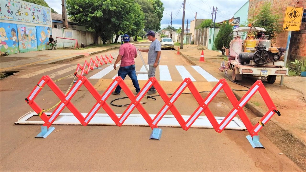 Além da limpeza e pintura das faixas já existentes, foi implantado outras nas Avenidas Canãa, Juscelino Kubitschek, Guaporé e Capitão Sílvio, em frente a creche Madre Tereza de Calcutá.