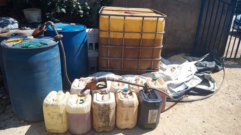 De acordo com a guarnição, cerca de 630 litros de óleo diesel estavam sendo tirados. Uma pessoa que estava comprando o combustível desviado também foi presa em flagrante e vai responder pelo crime de receptação.