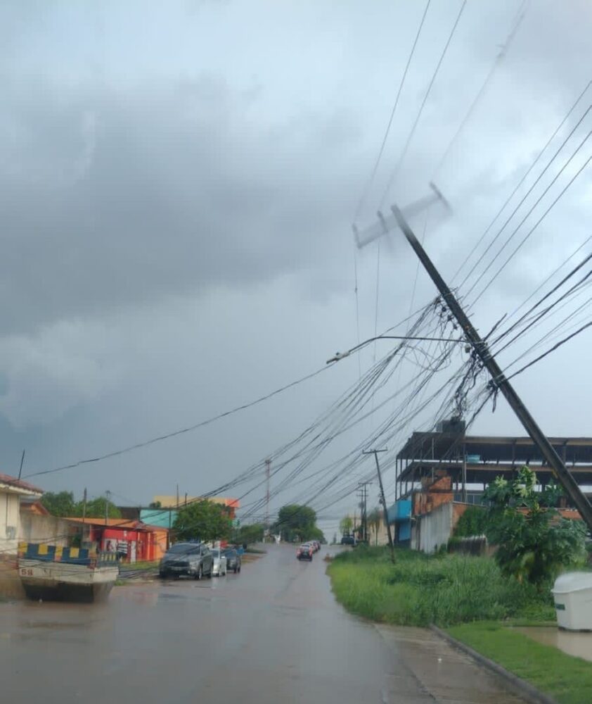 Os ventos fortes que acompanharam a tempestade também causaram estragos na avenida Nicarágua, nas proximidades da Maternidade Municipal, onde um poste de energia foi empurrado e ficou sustentado apenas pelos fios elétricos.