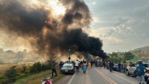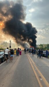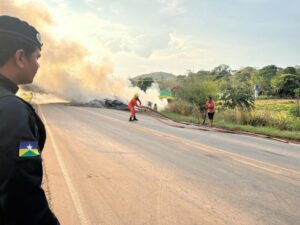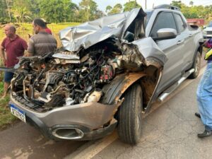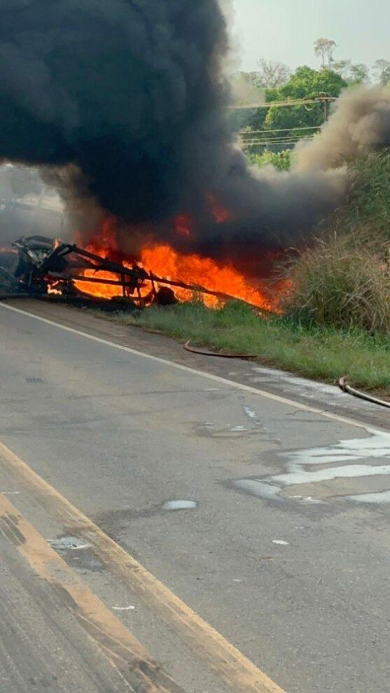 Uma Fiat Toro também se envolveu no acidente, e não foi incendiada porque foi arrastada por outro veículo, para longe das chamas.
