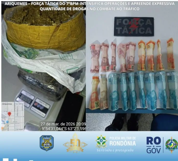 A Polícia Militar reforçou seu compromisso no enfrentamento ao crime organizado e destacou o trabalho incansável da Força Tática no combate ao tráfico de entorpecentes, contribuindo para o restabelecimento da ordem pública e maior segurança da população de Ariquemes.
