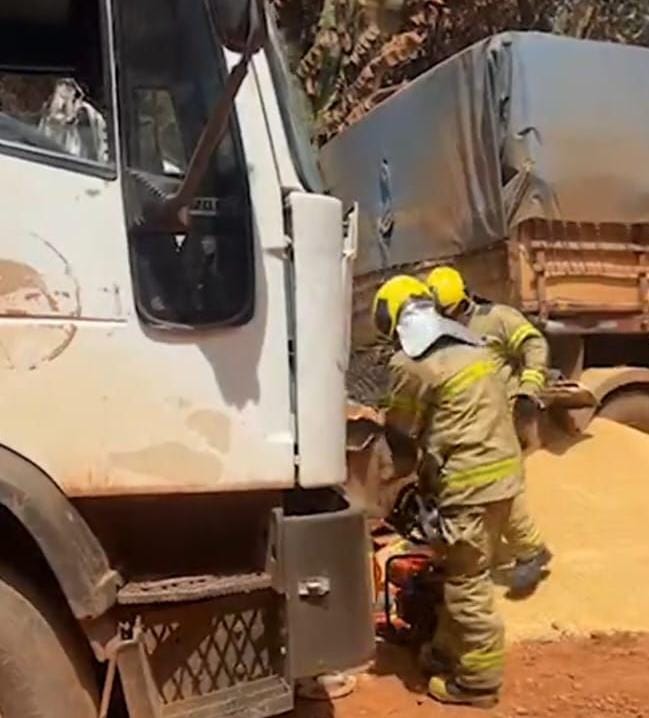 Com a força do impacto, um dos condutores ficou gravemente ferido e preso às ferragens da cabine. Equipes do Corpo de Bombeiros foram acionadas e realizaram o procedimento de desencarceramento para retirar a vítima com segurança.