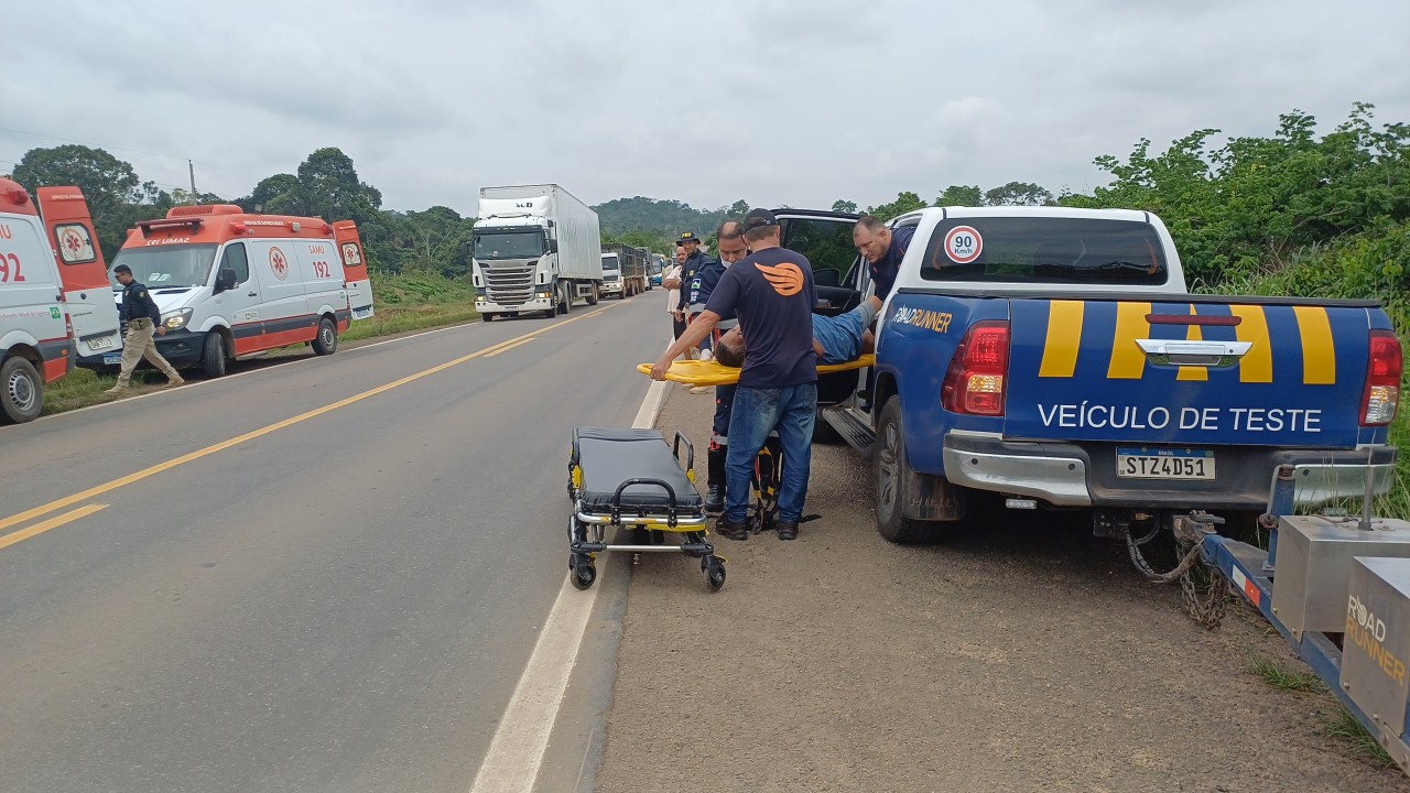 De acordo com informações preliminares, o acidente ocorreu em um trecho onde trabalhadores realizavam serviços na pista. Um veículo de testes e análise de pavimento, que puxava um reboque, teria reduzido a velocidade, o que levou a uma parada brusca da caminhonete. O caminhão da Secretaria de Obras, que vinha logo atrás, não conseguiu frear a tempo, colidindo na traseira do veículo.