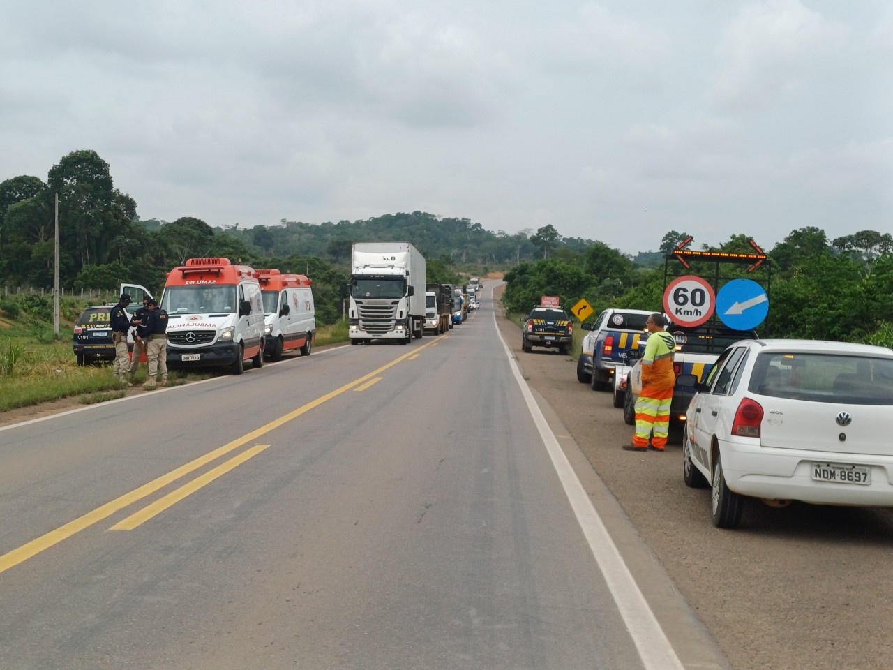 A Polícia Rodoviária Federal (PRF) esteve no local para controlar o tráfego, que ficou interditado em ambos os sentidos por um período. Após as devidas providências, o trânsito foi liberado e seguiu com lentidão no trecho.