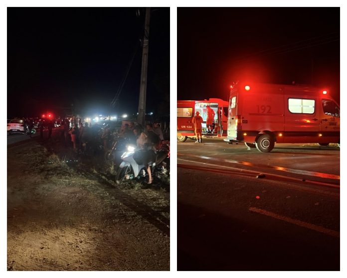 Segundo informações preliminares da Polícia Militar, uma motocicleta ocupada por um casal colidiu violentamente com um veículo de transporte público (táxi) nas proximidades do acesso à localidade conhecida como “Doizinha Esquerda”.