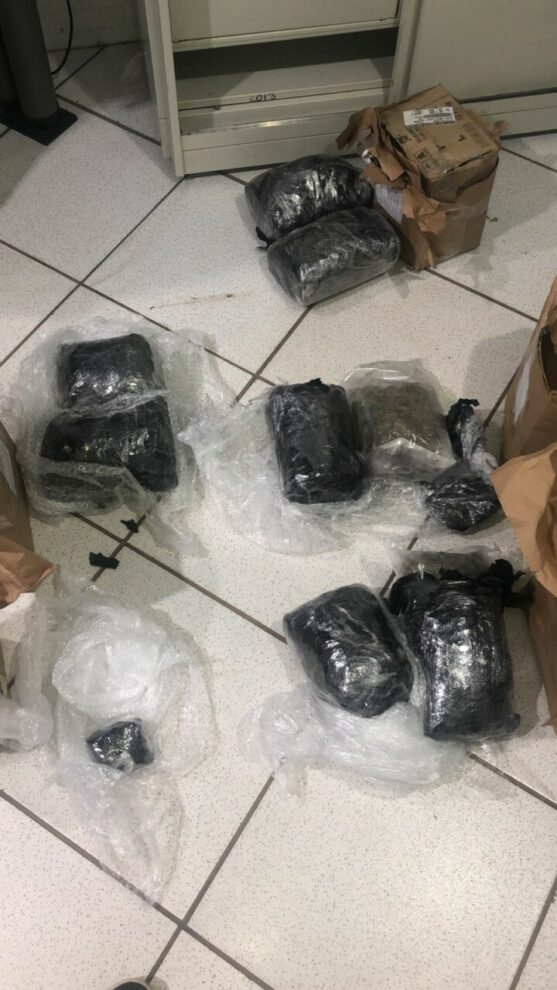 A Polícia Federal flagrou duas menores realizando o envio de encomendas contendo pacotes de maconha do tipo skunk dentro de caixas de papelão, na noite desta quinta-feira, 22/6.