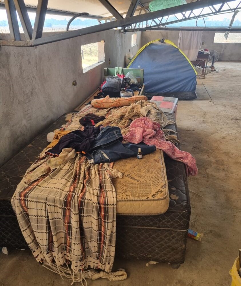 Nas fazendas vistoriadas a fiscalização encontrou trabalhadores dormindo no chão de galpões, outros em camas improvisadas, locais inadequados para fazerem suas refeições e higiene pessoal, além da ausência de equipamentos de proteção individual.