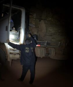 A Polícia Federal prendeu em flagrante, na madrugada desta quarta-feira (15/11), duas pessoas que conduziam dois caminhões carregados de toras de madeira nas imediações das Terras Indígenas Roosevelt e Parque Aripuanã, no município de Espigão do Oeste/RO.