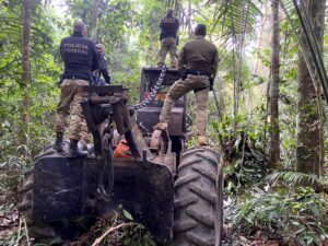 Durante a ação, foram encontrados e inutilizados quatro caminhões, um trator, duas motocicletas, seis acampamentos, duas motosserras e dois rádios de comunicação de longo alcance.
