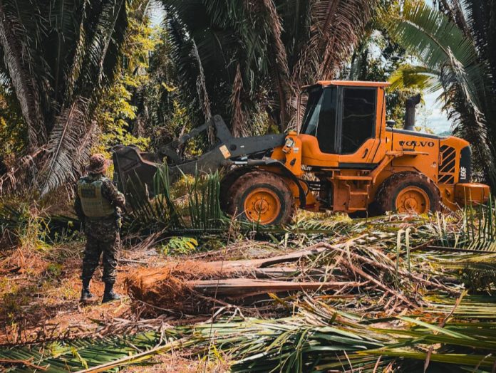 No local foram localizadas duas máquinas de grande porte, sendo uma pá carregadeira e uma escavadeira hidráulica. Os operadores, abordados pelas equipes, relataram que prestavam serviços a uma empresa local de pescados, supostamente sob orientação do proprietário da fazenda onde a supressão vegetal estava sendo executada.