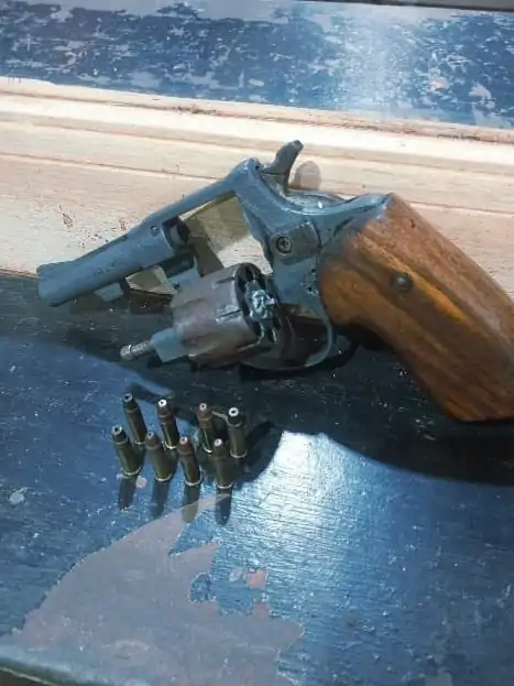 Durante a abordagem, o suspeito indicou onde estava a arma, localizada em sua residência. O armamento, que estava desmuniciado, foi apreendido. A vítima também entregou à guarnição oito munições intactas, compatíveis com o calibre do revólver.