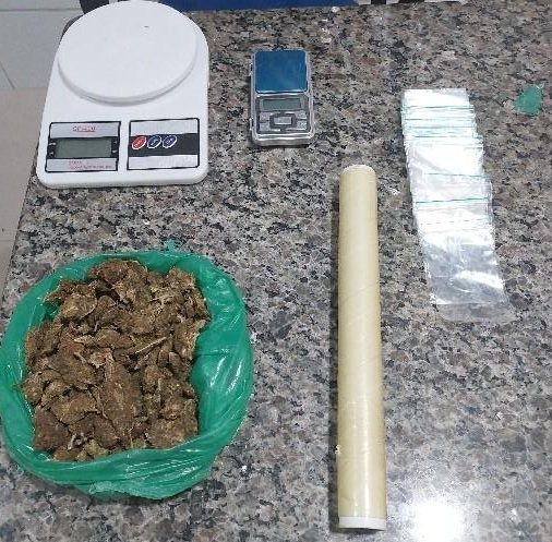 O suspeito foi abordado no interior do estabelecimento. No local, os policiais perceberam um forte odor característico de maconha, o que motivou buscas no imóvel, onde foi encontrada uma sacola contendo aproximadamente 186 gramas da substância, já embalada para venda, além de balanças de precisão, papel filme e diversas embalagens plásticas vazias — itens comumente usados para o preparo e fracionamento da droga.