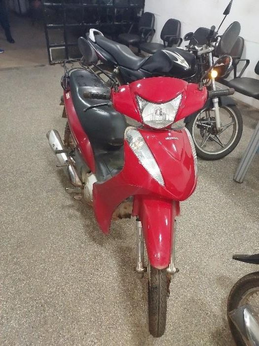 De acordo com informações repassadas à polícia o veículo uma Honda Biz 125 de cor vermelha estava estacionado de forma suspeita em frente ao estabelecimento comercial. A guarnição se deslocou até o local e após consulta ao sistema do Detran confirmou que o veículo possuía restrição de roubo ativa.