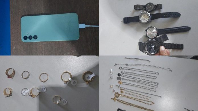 Durante buscas no local, foram encontradas as roupas utilizadas por L.G.E.M. no momento do furto, além de outras mercadorias da loja, como correntes, anéis, pingentes e relógios. Também foram apreendidas bebidas, joias e diversos itens de procedência duvidosa.