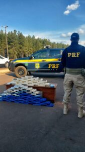 No decorrer da fiscalização, a equipe notou inúmeras contradições entre os dois a questionamentos básicos. Os policiais procederam à busca veicular e, ao acessarem a cabine do caminhão, logo sentiram um forte odor vindo debaixo da cama do motorista. Ato contínuo, foram encontrados 85 tabletes de drogas ilícitas, além de dezenas de munições de alto poder de fogo.