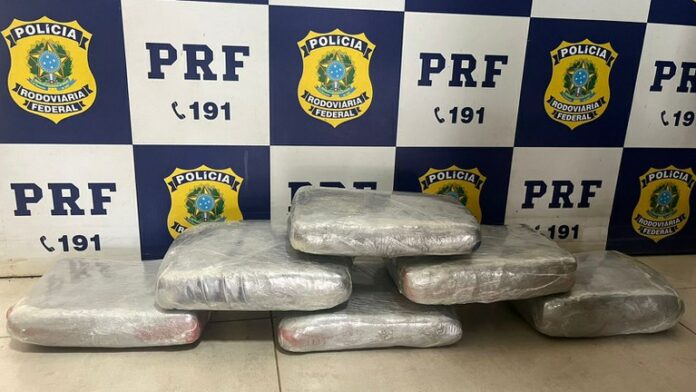 Durante a abordagem a um ônibus de transporte coletivo, a passageira apresentou excesso de nervosismo e não conseguiu fornecer detalhes simples sobre a viagem. Diante das respostas contraditórias e da atitude suspeita, a equipe da PRF solicitou a verificação da bagagem. Ao abrir o compartimento de carga, os policiais identificaram um forte odor característico e realizaram uma inspeção minuciosa. Dentro de uma das malas da passageira, foram encontrados seis tabletes de substância análoga a skunk, totalizando aproximadamente 6,8 kg.