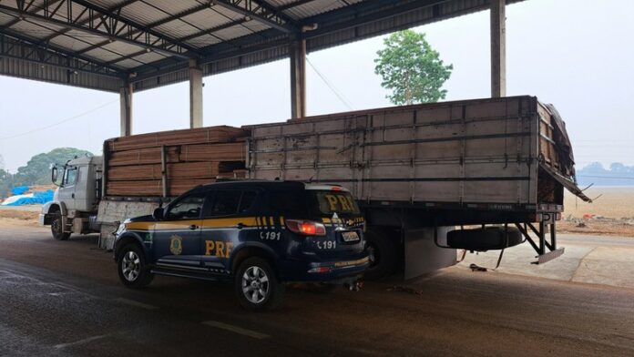 A Polícia Rodoviária Federal (PRF) em Rondônia, na tarde da última quinta-feira (19), realizando atividade de fiscalização ambiental na BR 364, próximo ao km 514, no município de Ariquemes/RO, identificou um carregamento de madeira sendo transportada de modo contrário à legislação vigente.