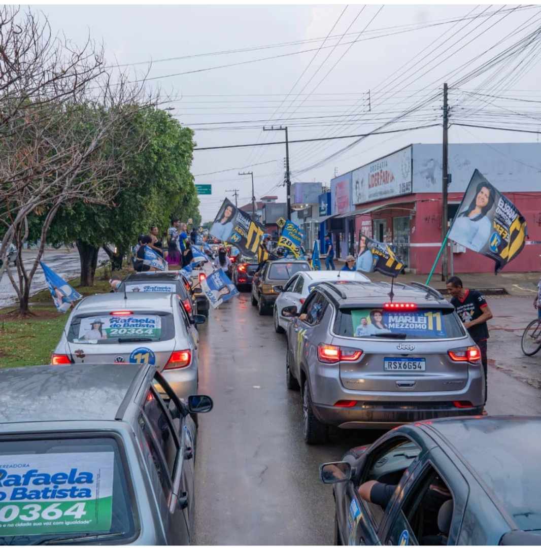 Já no período da tarde, foi a vez da candidata Marlei Mezzomo, do Partido Progressista (PP), realizar sua carreata, que surpreendeu pela adesão massiva, mesmo com a forte chuva que atingiu Ariquemes durante o evento. Com início às 14h, a carreata percorreu um extenso trajeto, sendo considerada pelos organizadores como a maior dos últimos anos na cidade.