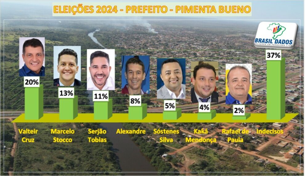 O Instituto Brasil Dados divulgou mais uma pesquisa de intenção de votos para aferir a tendência do eleitorado para a eleição de 2024, no município de Pimenta Bueno.