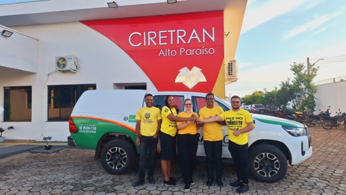 A equipe da CIRETRAN de Alto Paraíso, liderada pelo Sr. AntônioFrancisco, celebra uma importante conquista: a chegada de uma caminhonete para auxiliar no desempenho das atividades diárias.