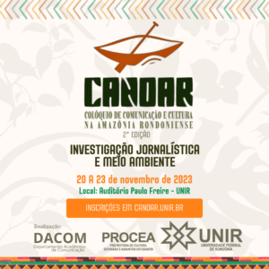 Entre os dias 20 e 23 de novembro, acontecerá a segunda edição do Colóquio de Comunicação e Cultura da Amazônia Rondoniense, o CANOAR. O evento ocorrerá no Auditório Paulo Freire, no Campus UNIR José Ribeiro Filho, em Porto Velho.